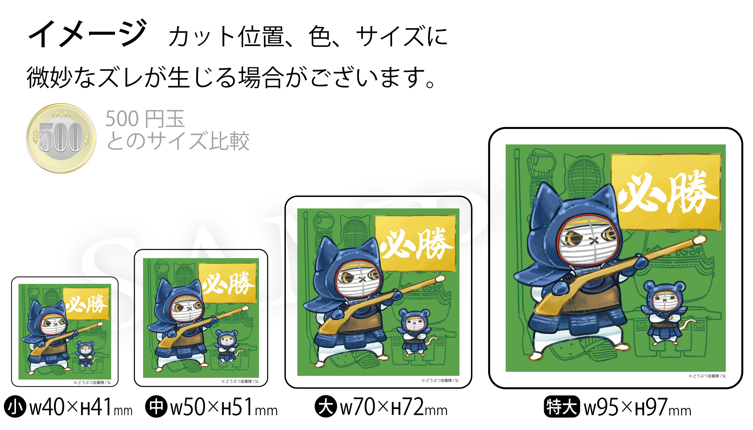 カット位置、色、サイズに微妙なズレが生じる場合がございます。