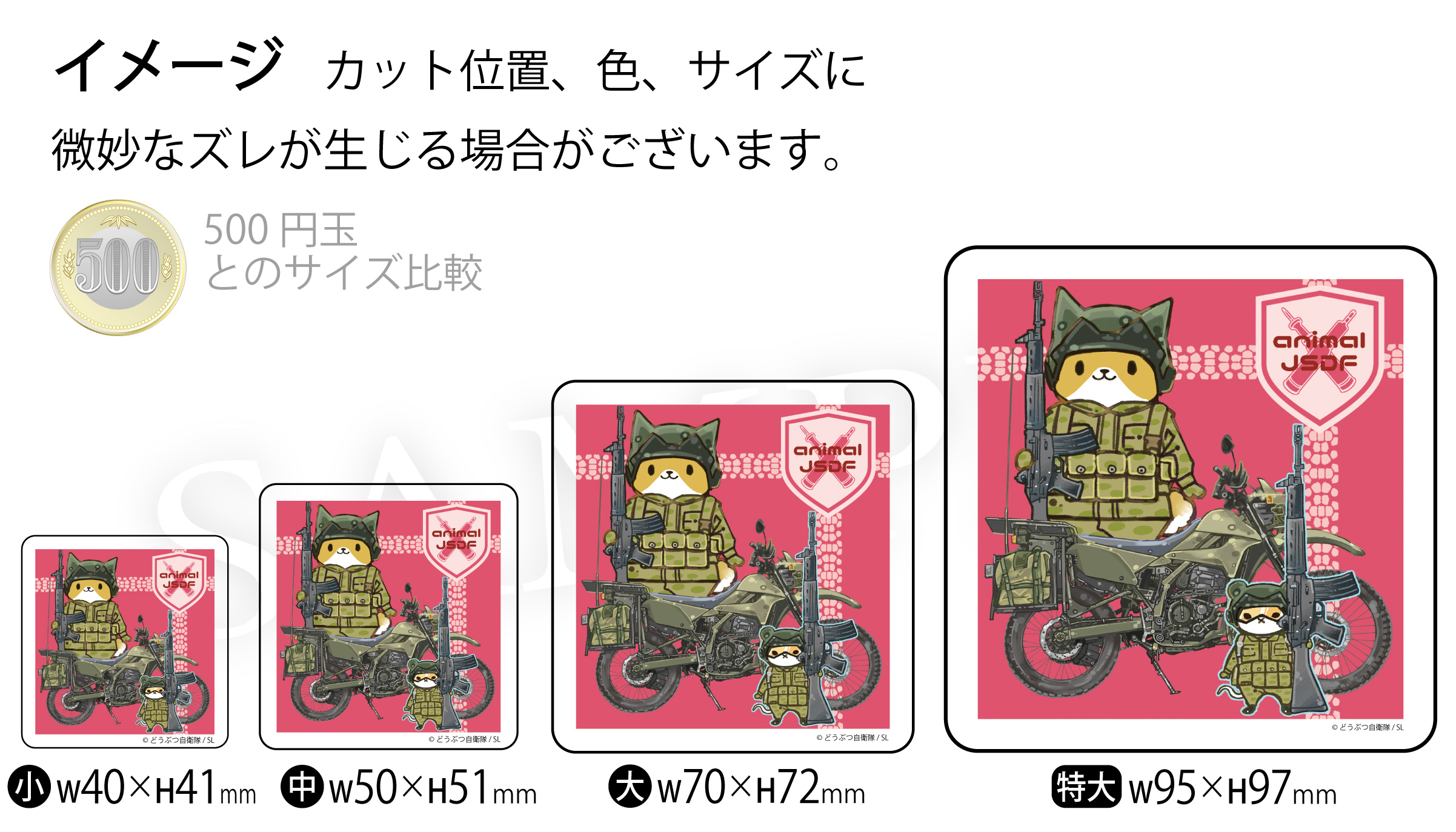 カット位置、色、サイズに微妙なズレが生じる場合がございます。